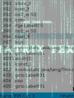 • Theo như kinh nghiệm của mình thì hầu hết các game online file speed thường ở main/f.class bạn dùng Bytecode editor vào file f.class, sau đóở khu chọn lệnh thì bạn chọn Tìm kiếm với từ tìm kiếm là 50(hầu như các game online đều như vậy)sau khi tìm kiếm xong nó sẽ trả về 1 số tên mục cho bạn chọn lựa, bạn chọn mục tên run mở ra và bấm phím sang trái cho con trỏ xuống hàng cuối cùng, tiếp theo bạn bấm phím lên tìm đến đến 2 dòng giống nhau ldc2_w 50 như trong ảnh